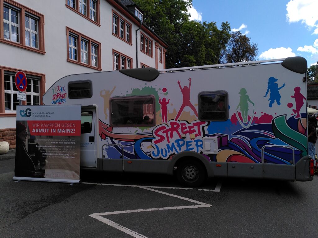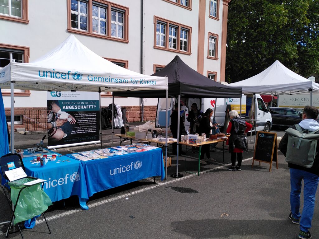 Besonderer Beliebtheit erfreute sich dabei die Spielecke für Kinder, die den lieben Kleinen bei diversen Beschäftigungen eine Vielzahl an ansprechenden Aktivitäten bot: mit den Kolleg*innen von unserem Street Jumper Team und den Helfer*innen von UNICEF Mainz konnten die Kinder z.B Dosenwerfen, Trampolinspringen, Pedalo fahren, Buttons pressen und vieles mehr.