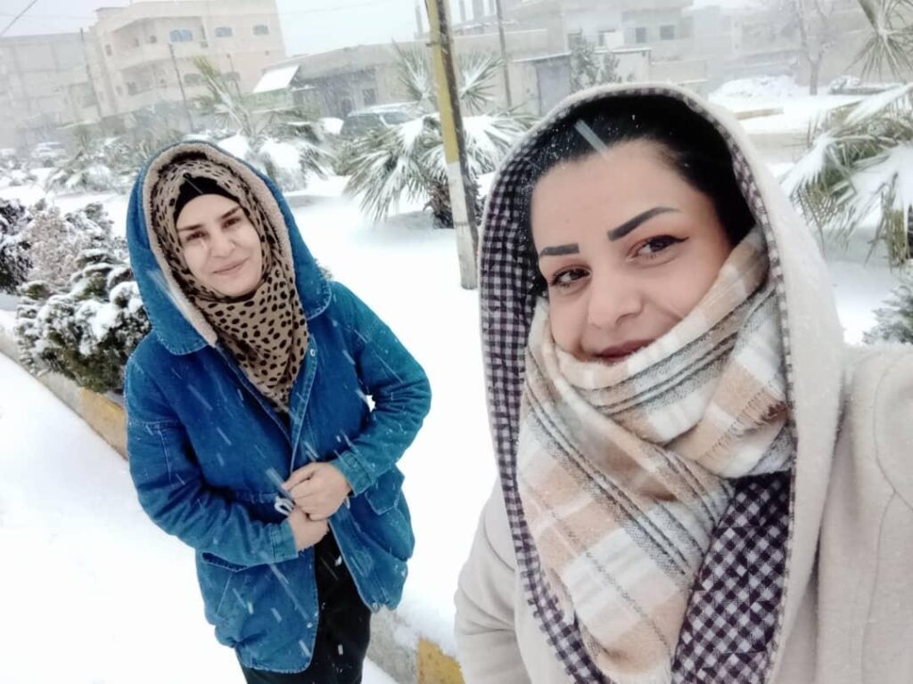 Bilder vom 21.01.2026 aus Kobanê. Mittig die beiden Krankenschwestern aus dem a+G Diabeteszentrum.